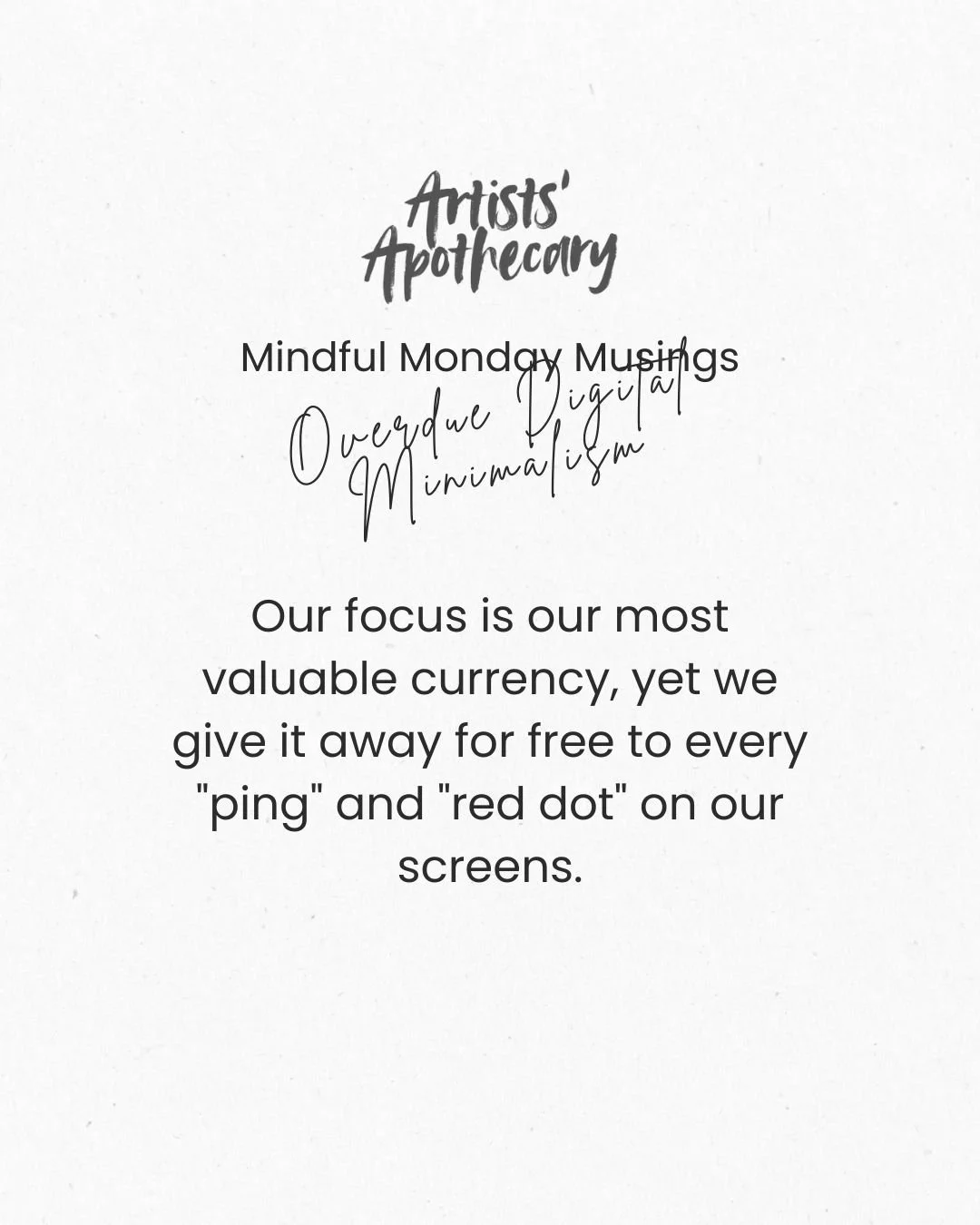 #MindfulMonday #DigitalMinimalism #ArtistsApothecary #CreativeFocus #SlowLiving #AnalogSoul #StudioVibes #MindfulnessForArtists